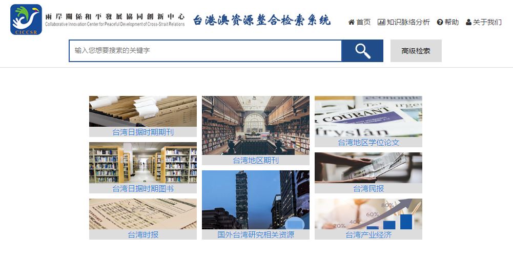 简介:目前系统整合了台湾地区期刊、学位论文、产业经济、日据时期图书与期刊、台湾时报等报刊全文信息资源,提供多途径多种方法检索功能,实现现有资源一站式检索服务,并提供研究趋势以供研究人员和学生参考使用。原来各个子库照常开放访问。