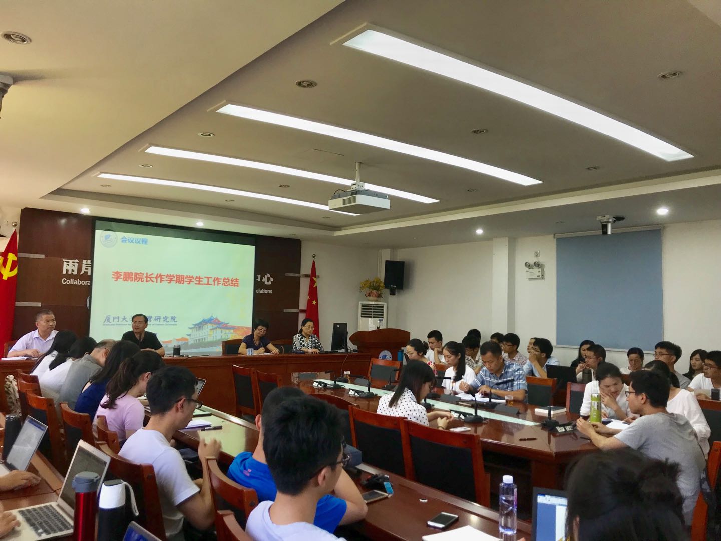 首先,李鹏院长作学期学生工作总结。他强调,中共中央政治局常委、全国政协主席汪洋莅临我院,多次对我院人才培养工作表示关心,我院将继续紧抓人才培养环节,为国家涉台工作提供人才保障。