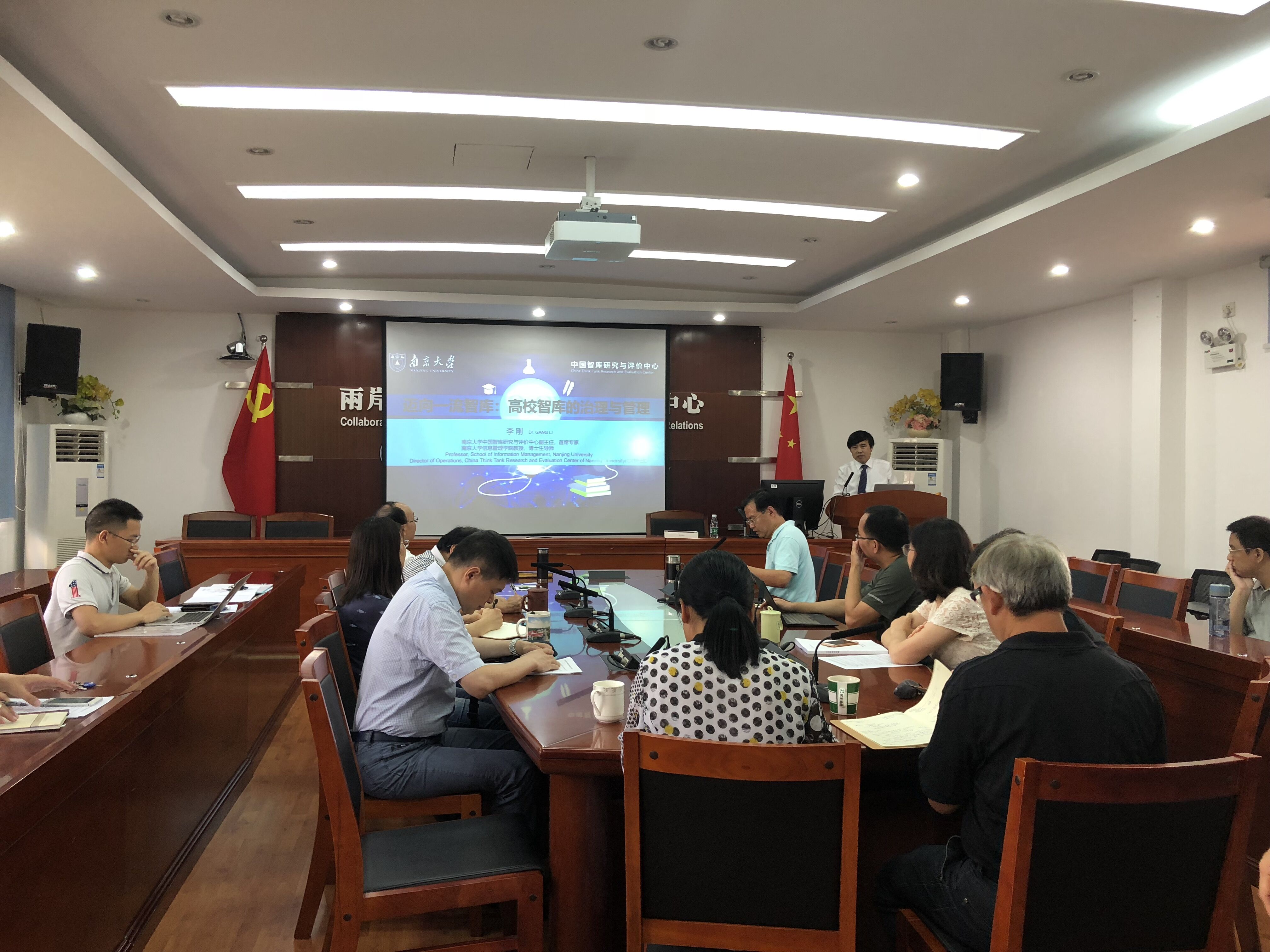7月2日下午,南京大学信息管理学院教授、南京大学中国智库研究与评价中心副主任、首席专家的李刚教授莅临我院,举办了题为《一流Pro之路:高校智库治理与管理》的讲座。我院李鹏院长主持本次讲座,两岸协创中心执行主任刘国深教授、院党委书记曾坤瑜、院党委副书记陈文、副院长彭莉教授、副院长张文生教授、副院长张羽教授等多位老师聆听本次讲座。