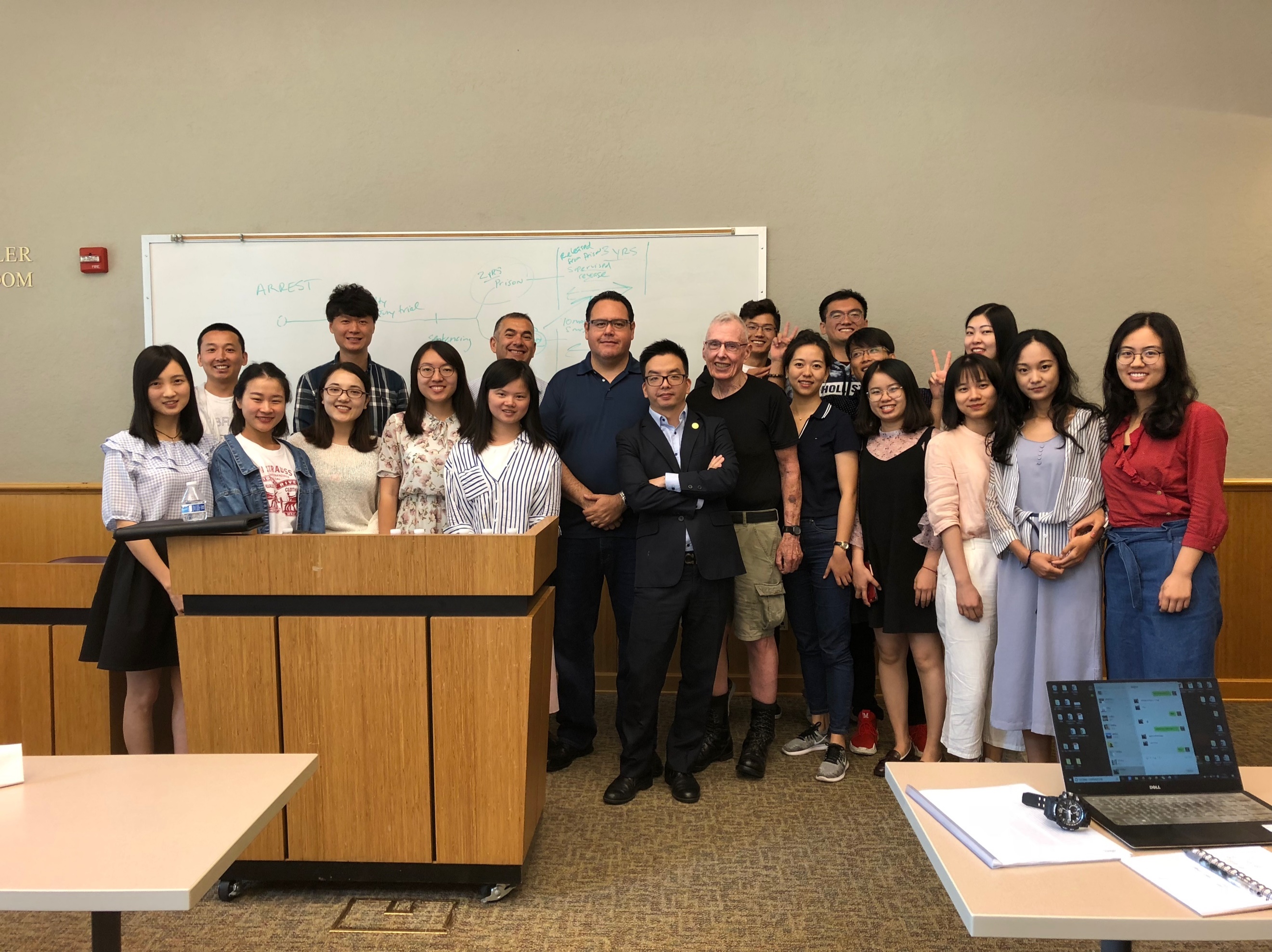 2018年7月20日至8月21日,我院10位硕博士学生参加了美国圣地亚哥州立大学美国基础法庭审判课程暑期项目。通过一个月的学习,我院学生提高了英语应用水平,体验了美式课堂的教学方式,初步学习了解了美国法庭审判理论知识,并对美国历史文化有了更多的了解,对他们扩大台湾研究视野,致力于推动两岸关系和平发展,推进和平统一进程有很大的帮助。