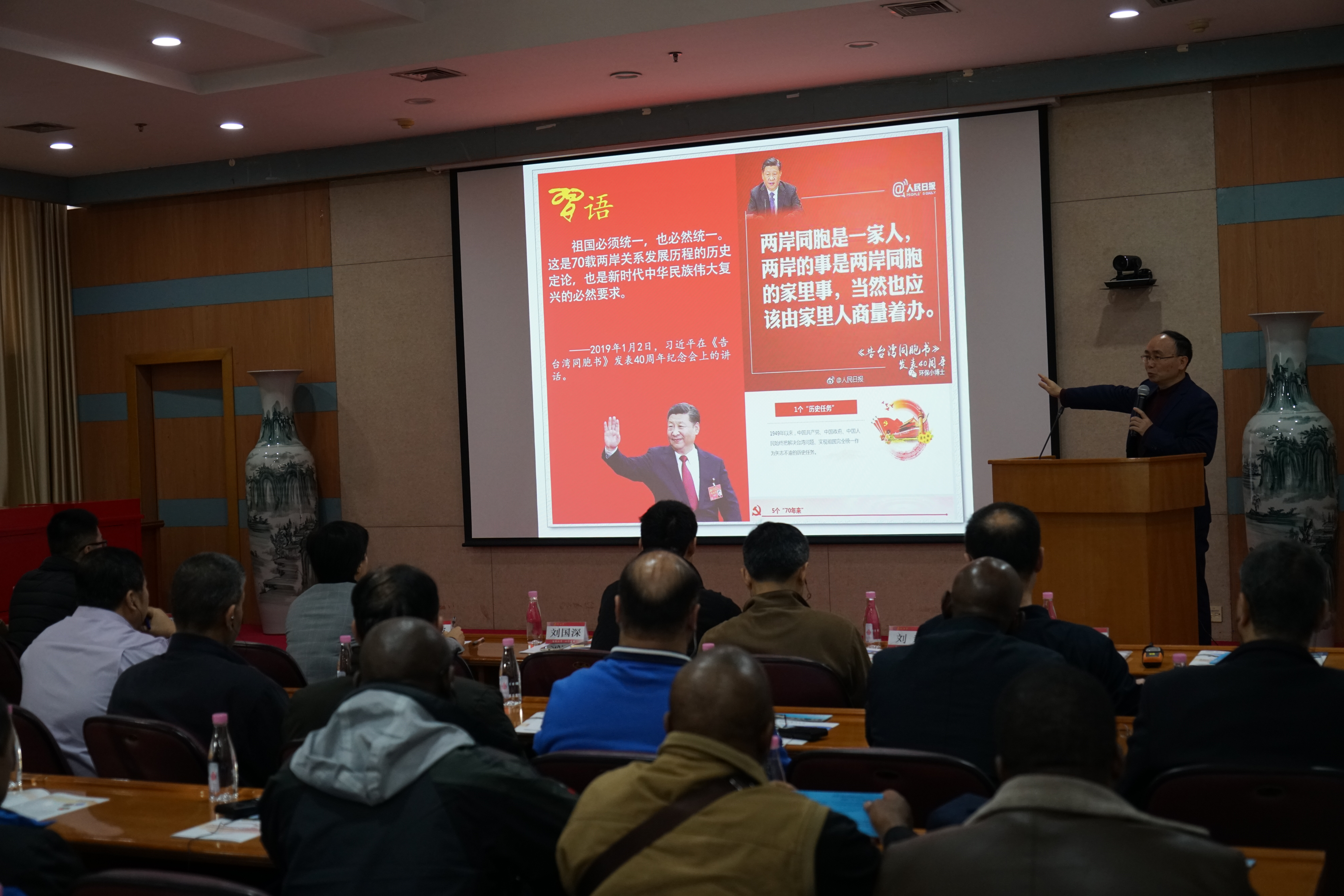 1月23日上午,应国防大学国际防务学院邀请,刘国深教授在嘉庚主楼220室为外国高级军官讲授《台海局势与中国统一》问题。