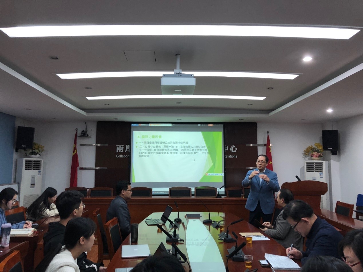 3月25日下午,台湾云林科技大学企业管理系/研究所专任教授、EMBA执行长锺从定先生受邀在台湾研究院五楼学术报告厅作题为“变动中的两岸关系:台湾‘立委’补选后新情势” 的讲座。讲座由经济研究所所长王华教授主持,唐永红教授、石正方副教授、王勇副教授、杨芳助理教授及多所博硕士研究生参与了讲座。