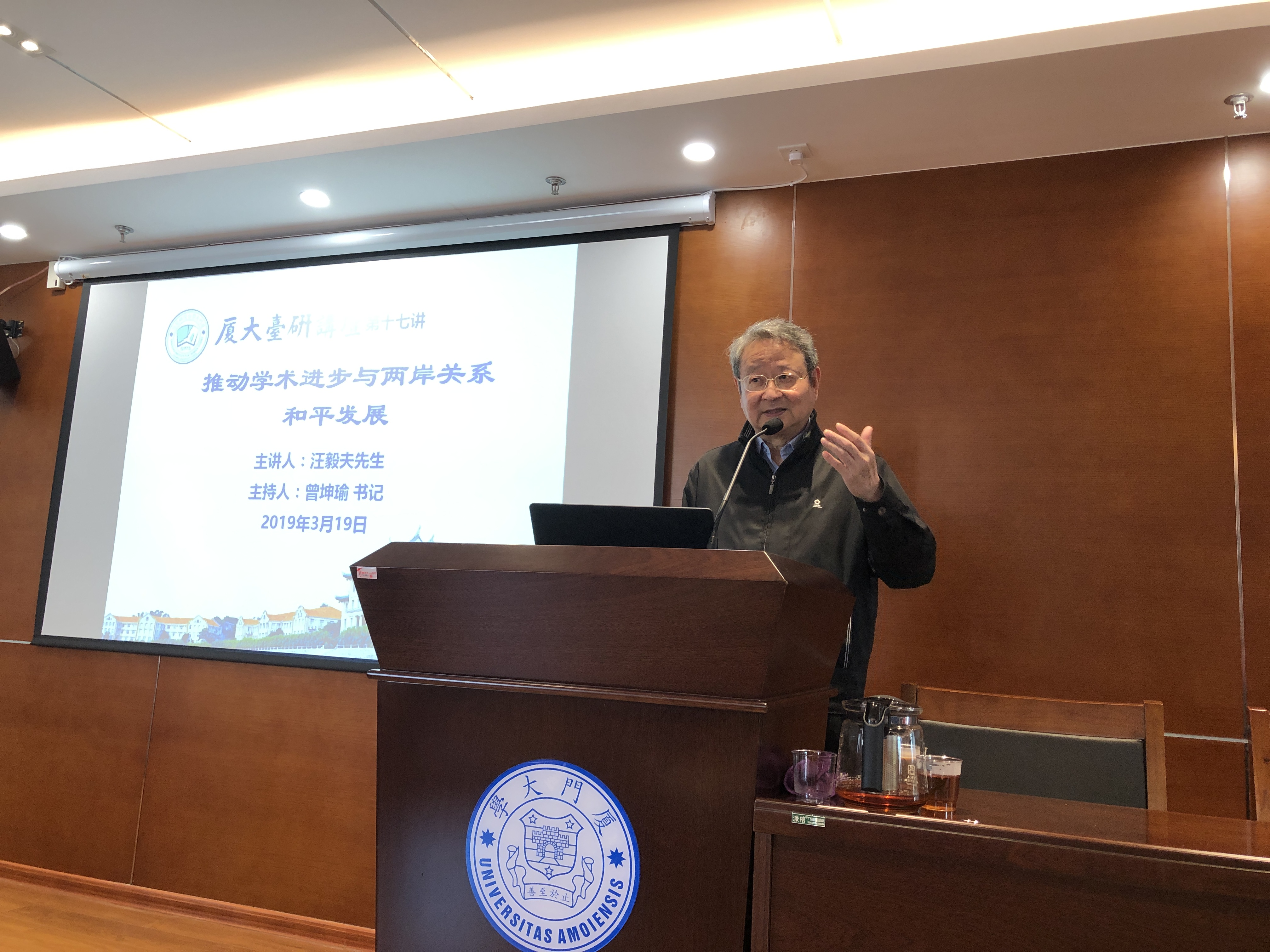 3月19日下午,999全讯白菜网讲座教授、全国台湾研究会副会长汪毅夫先生在嘉四420报告厅为我院师生作了一场“推动学术进步和两岸关系和平发展”的学术报告,报告内容如下: