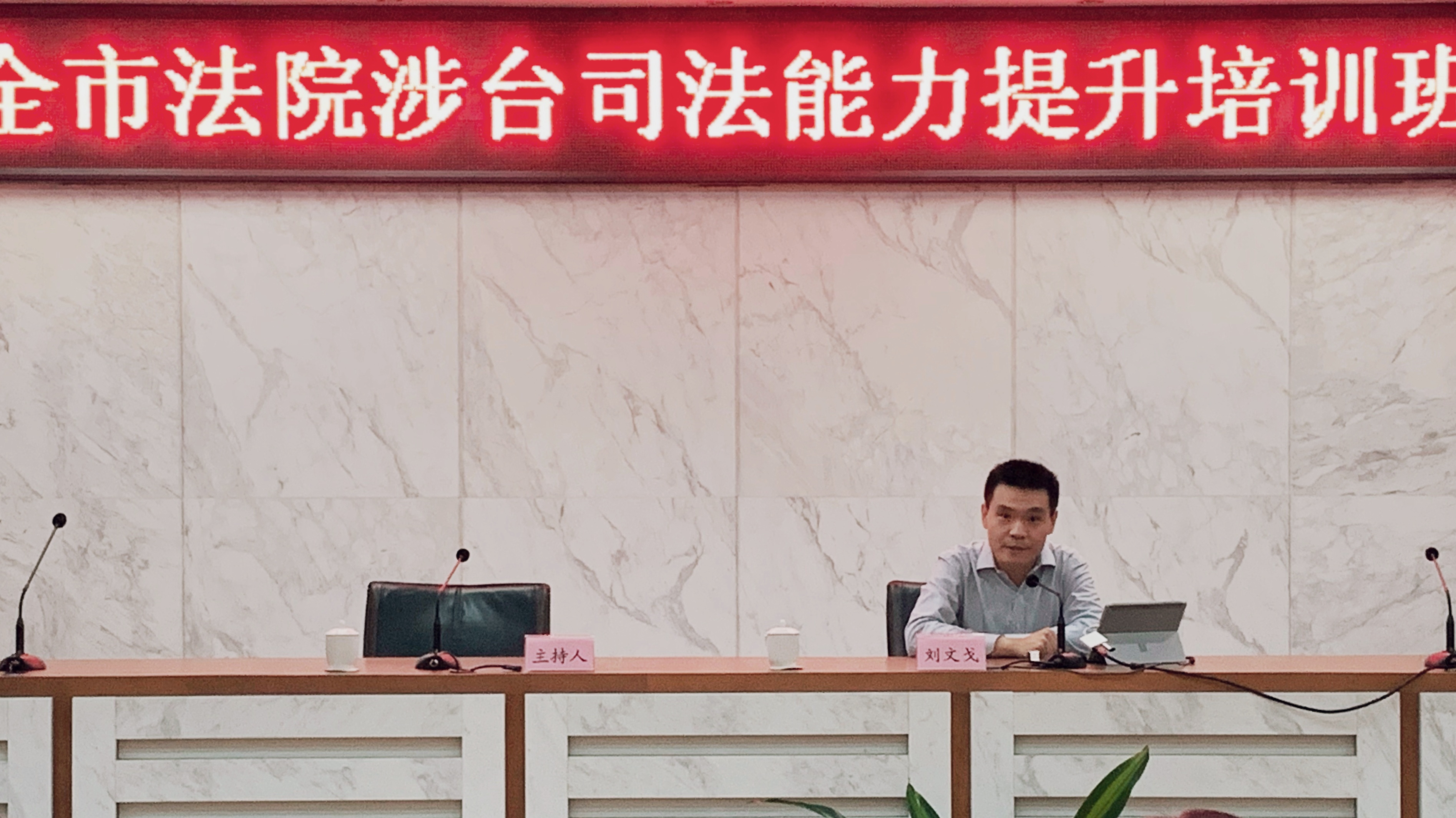 应厦门市中级人民法院邀请,法律所副所长刘文戈老师作为“全市法院涉台司法能力提升培训班”主讲教师之一,为厦门市两级法院法官讲授台湾地区法律查明的理论与实务问题。课程由厦门市中级人民法院涉台案件审判庭庭长江伟主持,最高人民法院、福建省高级人民法院有关领导莅临旁听。