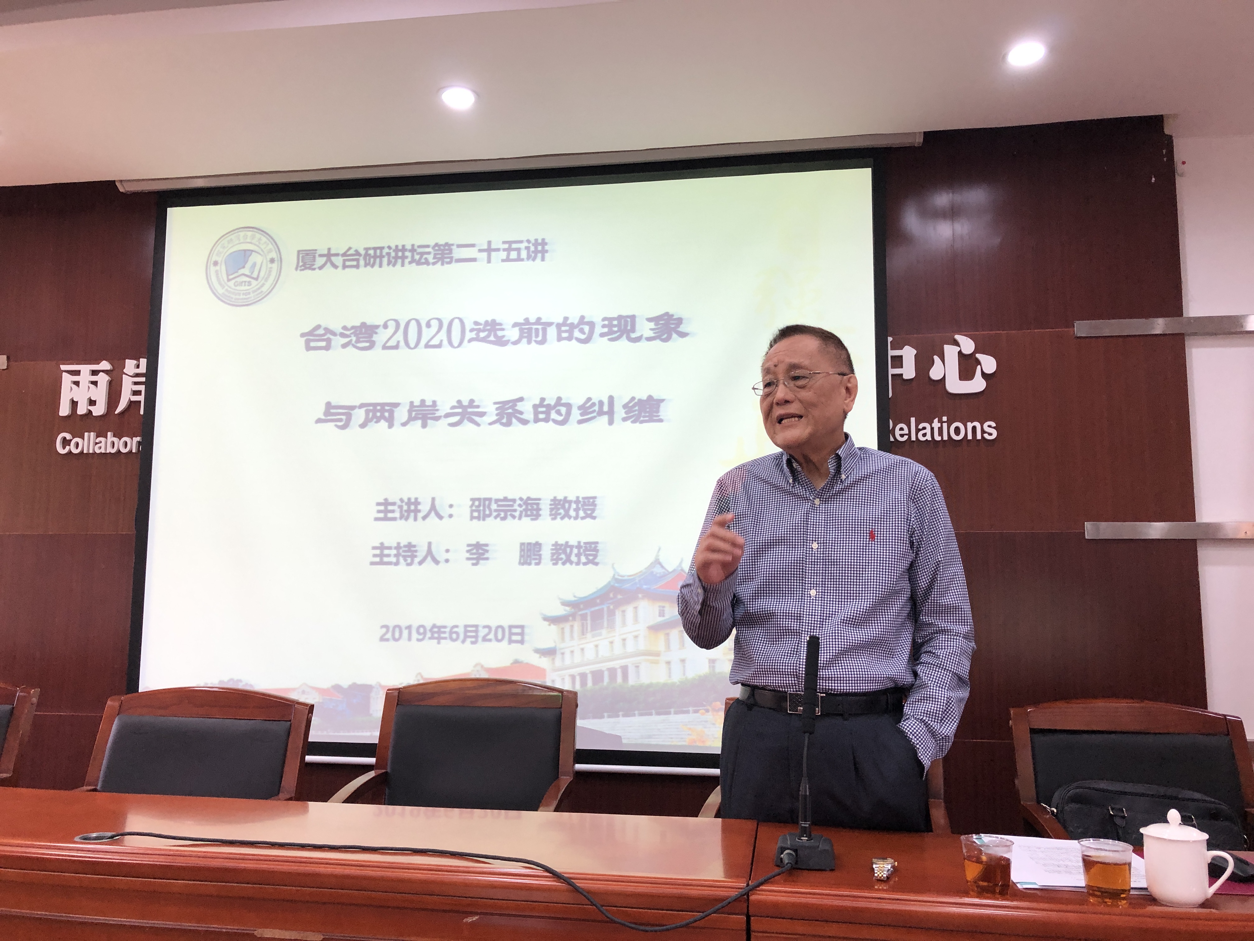 6月20日,台湾知名学者、现任澳门理工大学名誉教授邵宗海做客“厦大台研讲坛”,就“2020年台湾选前的现象与两岸关系的纠缠”为本院师生带来了一场精彩讲座。邵宗海教授对台湾岛内围绕2020年地区领导人选举出现的各种政治现象进行了剖析,并就这些政治现象可能对未来台湾政局的发展和两岸关系的影响也进行了分析。