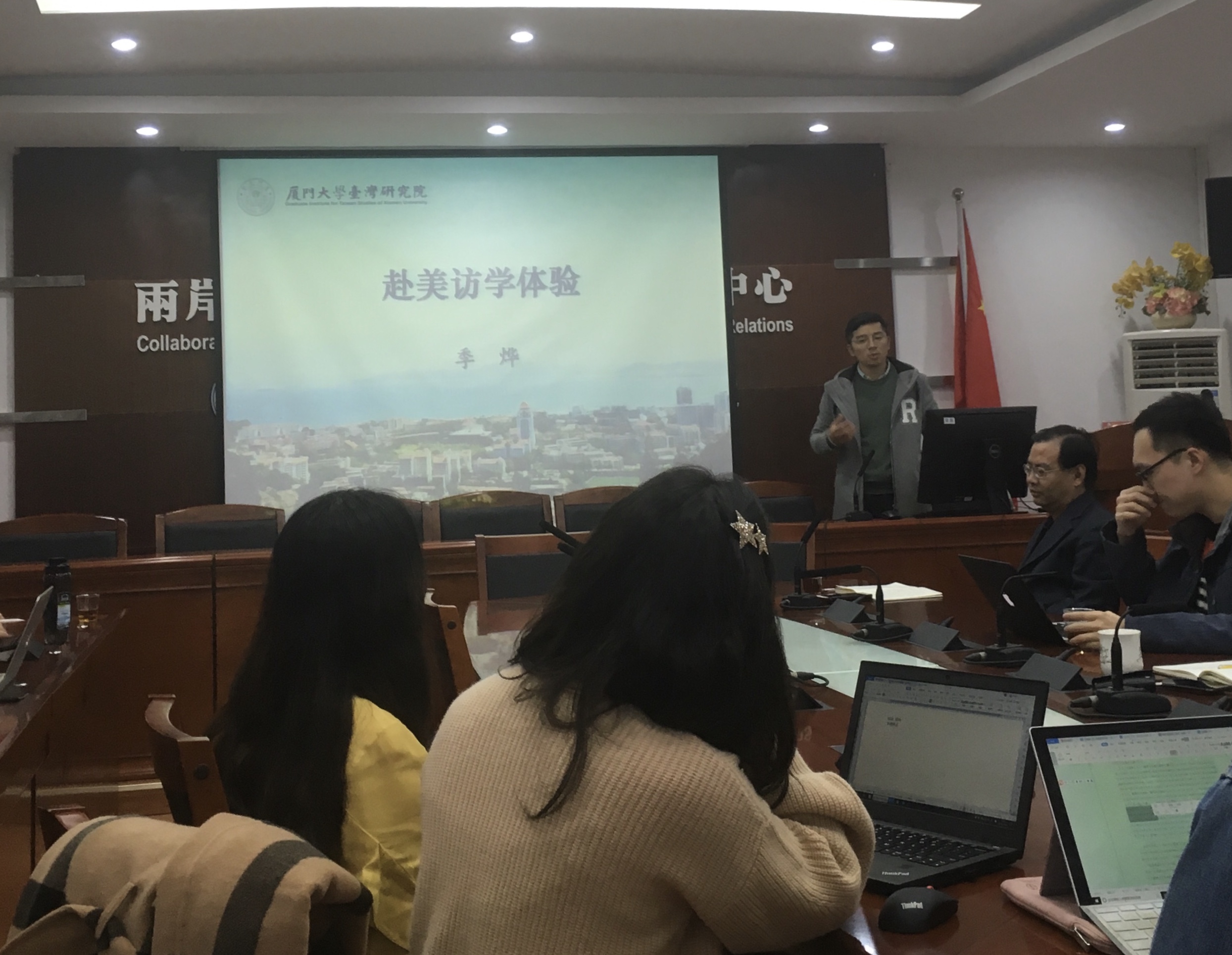 12月11日晚上19点,第四十一期台湾相对论在台湾研究院507会议室顺利举办。此次沙龙邀请到了李鹏院长、季烨副教授、15级历史所博士生李非凡、19级政治所博士生王梦诗为我院师生作出国访学的经验讲座。19级政治所博士生郭剑峰担任主持人,各所同学到场聆听。