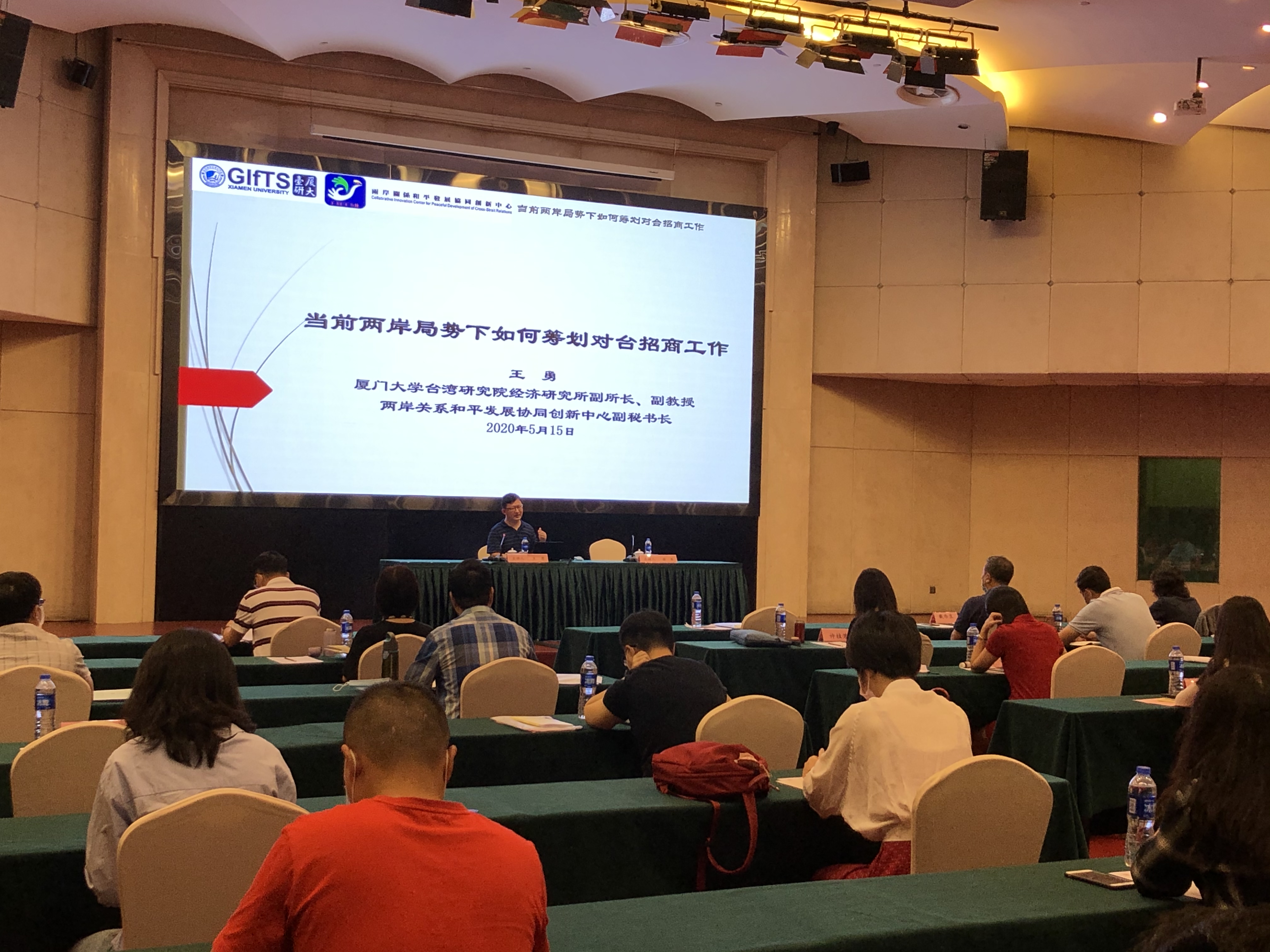受厦门市商务局邀请,2020年5月15日上午,我院经济所副所长王勇副教授在集美区杏林湾大酒店会议室为厦门市招商引资专题培训班处级以上领导干部学员近60人做专题讲座,主题为:《当前两岸局势下如何筹划对台招商工作》。讲座主要涵盖“2020年台湾地区领导人选举”、“2020年台湾地区领导人选举后岛内政治生态变化”、“2020年台湾地区领导人选举后的两岸关系”、“台湾经济发展新态势对开展对台招商引资的影响”、“中美贸易摩擦对开展对台招商引资的影响”、“ECFA若无法续签对两岸经贸合作的影响”、“推动两岸对台产业合作的案例借鉴——昆山深化两岸产业合作试验区”、“厦门对台招商引资的发展现况及政策影响”、“新形势下厦门创新对台招商引资的思路”等九方面内容。报告内容图文并茂,数据详实深入,逻辑思路清晰,分析深入全面,所提出的相关观点得到讲座现场的市商务局招商办、市招商中心、市发展促进中心、各区、自贸区、火炬园区等各处级以上领导干部学员的充分肯定和认同,互动强烈,取得良好效果。