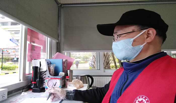 张敦财老师虽然已经退休,但依然多次参加社区防疫工作,发挥党员先锋带头作用。