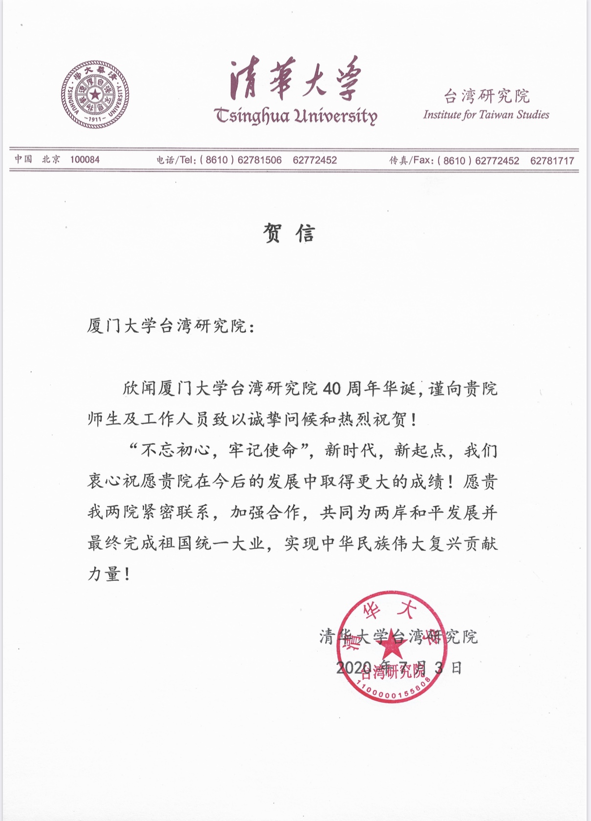 【可喜可贺】清华大学台湾研究院:祝贵院取得更大成绩!