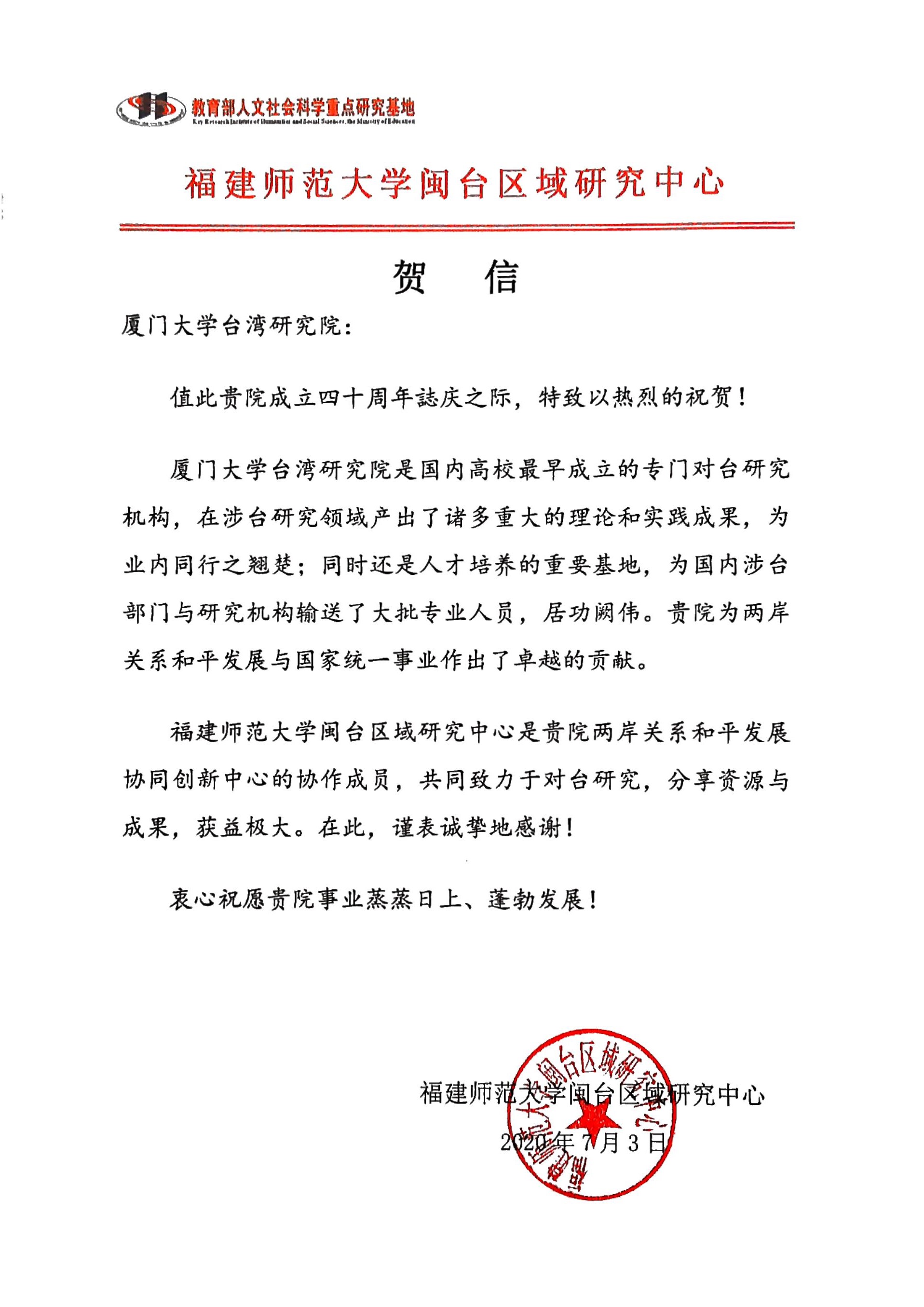 【可喜可贺】福建师大闽台区域研究中心:祝蒸蒸日上,蓬勃发展!