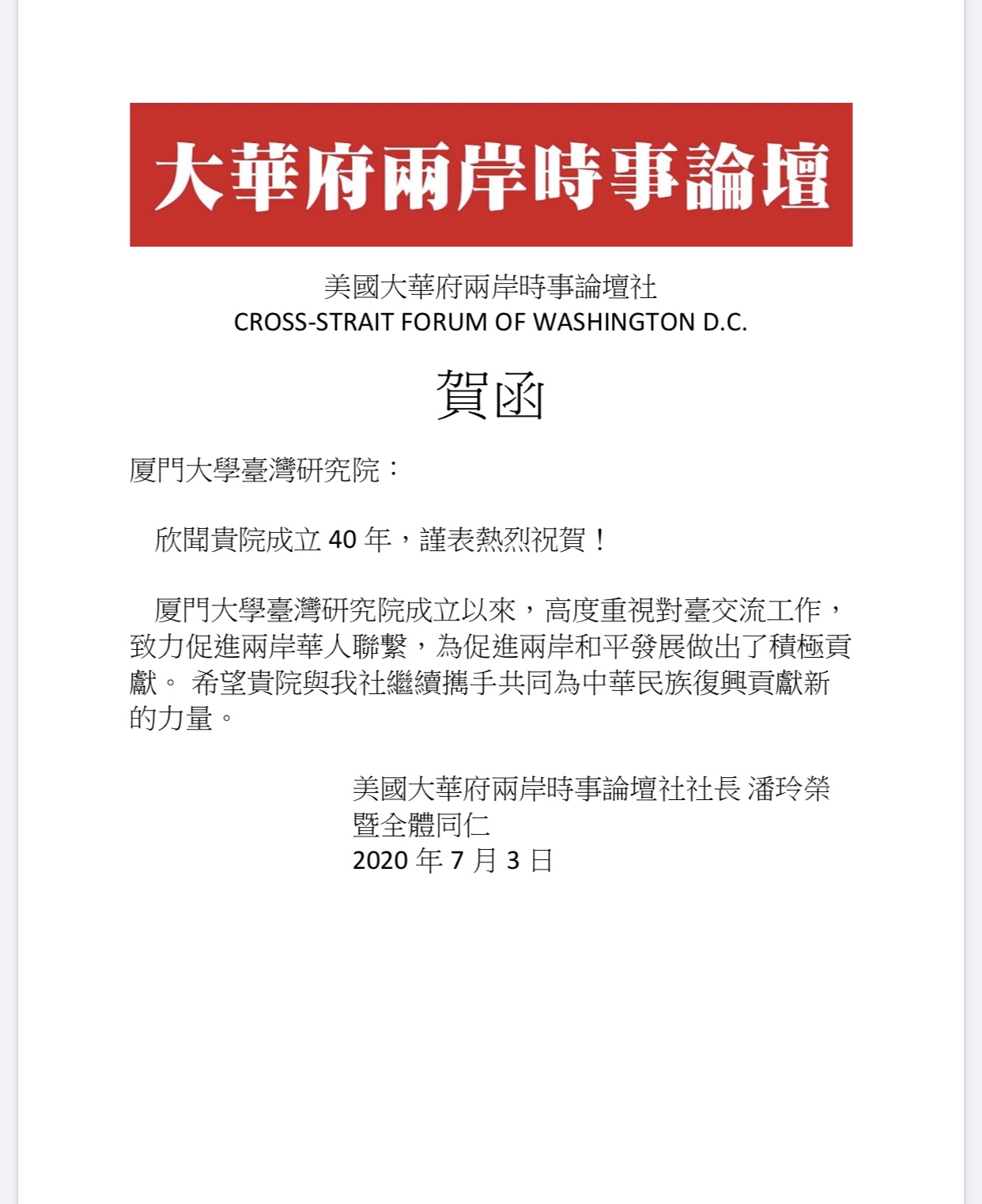 【可喜可贺】美国大华府两岸时事论坛社:携手共同为中华民族复兴贡献力量
