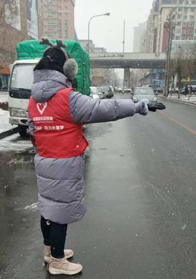 当被问及在抗疫志愿服务工作中面临的最大困难时,笑婕同学表示收获远远多于困难。无论是东北零下二三十度的天气,还是心理疏导中碰到的移情作用,“很多东西是真的很困难,但有时候想一想觉得也没什么。”最让她动容的是某天值班,下了四个多小时的暴雪。“我站在那里。寒风凛冽中,我听到来自行人的关心与担忧:‘姑娘你冷不冷啊?别冻感冒了!’我收到附近居民的爱心——姜汤、奶茶,围巾……我感受到更多登记车辆的耐心与体谅。当所有人都在竭尽所能地守望相助,还有什么样的风霜不能挨过?值班快要结束时候,风雪渐缓。阳光穿过雪花照在我身上,那一瞬间的温暖我记忆深刻——所有的风霜雨雪都会消散,所有的温暖都在逆光而来。”