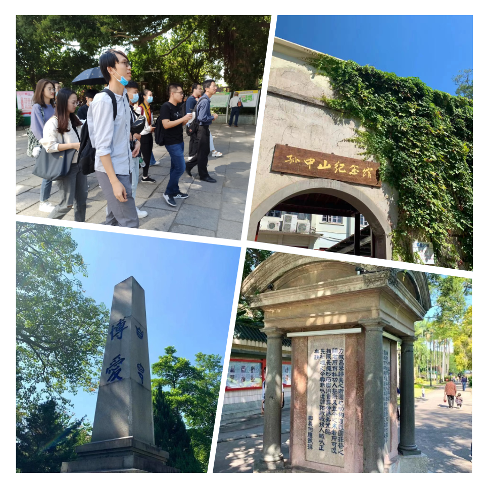 考察团一行最先到达已有百余年历史的漳州中山公园,进入公园后,黄俊凌老师为大家讲解漳州古城区的历史变迁,分享了中山公园与孙中山、陈炯明等历史人物的文化渊源,并带领同学们参观了公园内的中山纪念亭、孙中山纪念馆(漳州府衙旧址)、博爱碑、闽南革命烈士纪念碑等历史遗迹。通过俊凌老师的讲解和实地的参观,同学们的思绪不自觉被带入了曾经那个动荡的历史岁月,更深地感受到了漳州古城的沧桑巨变。