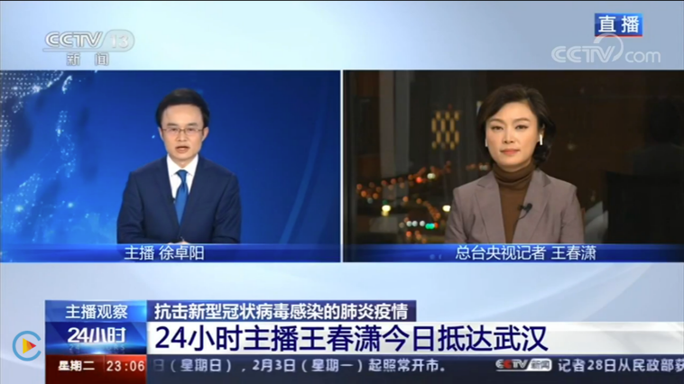 1月28日,王春潇校友和她的同事们逆行前往武汉,设立“战疫情-武汉直播间”。在疫区的103天里,除去隔离期的14天,在余下的89天时间里,王春潇和同事们共做了94期节目,迎来了138人次的采访对象。每场直播时长至少都有半个小时以上,有时甚至一天要直播两场。面对如此高强度的工作压力,王春潇和同事们始终坚守在直播间的“战场”,以央视的视角和声音向亿万电视观众传递疫情防控前线客观、真实的消息。