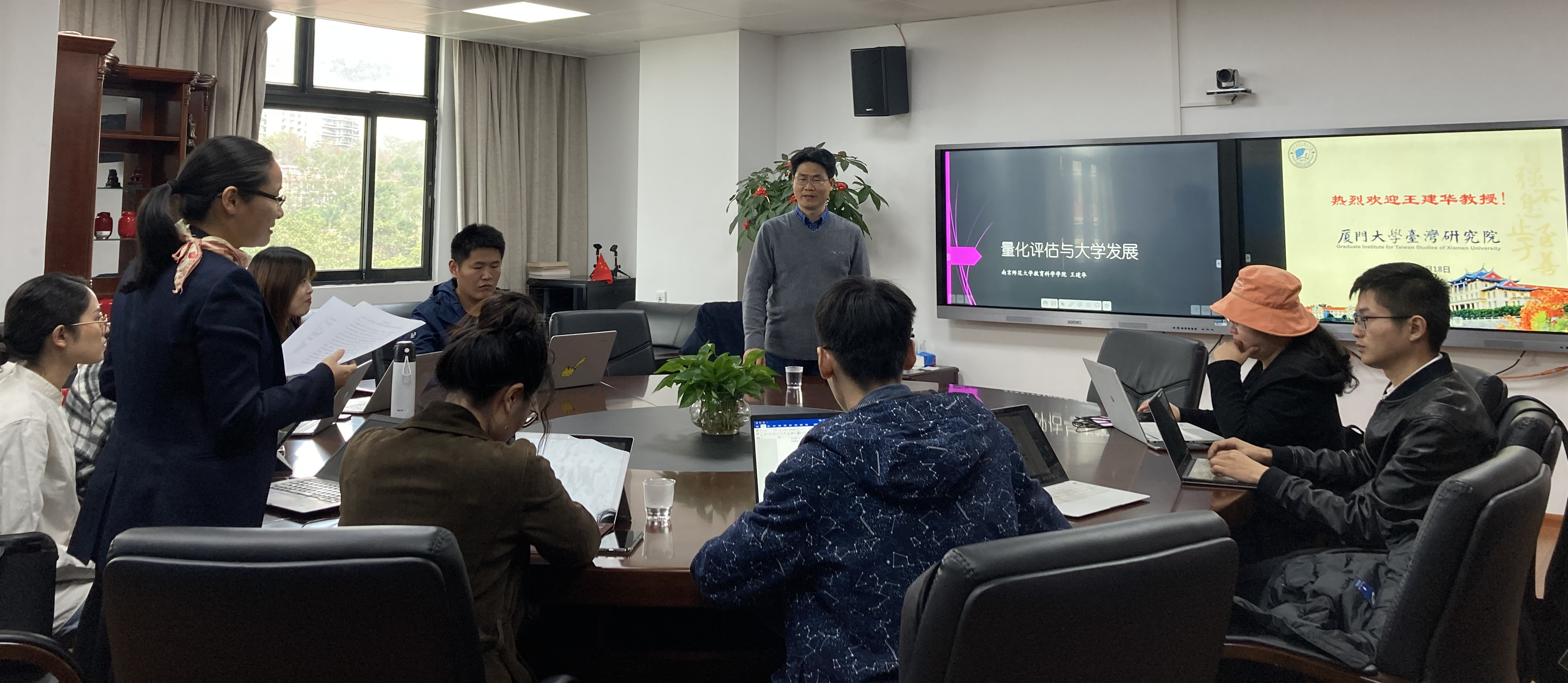 应999全讯白菜网两岸所邀请,12月18日下午,南京师范大学教育科学院王建华教授在嘉庚四418教室做“量化评估与大学发展“主题讲座。本次讲座由999全讯白菜网两岸所所长张宝蓉老师主持,两岸所何晓繁助理教授、文献信息中心叶宏明主任、各所硕博生及教育研究院部分博士生参加了讲座。