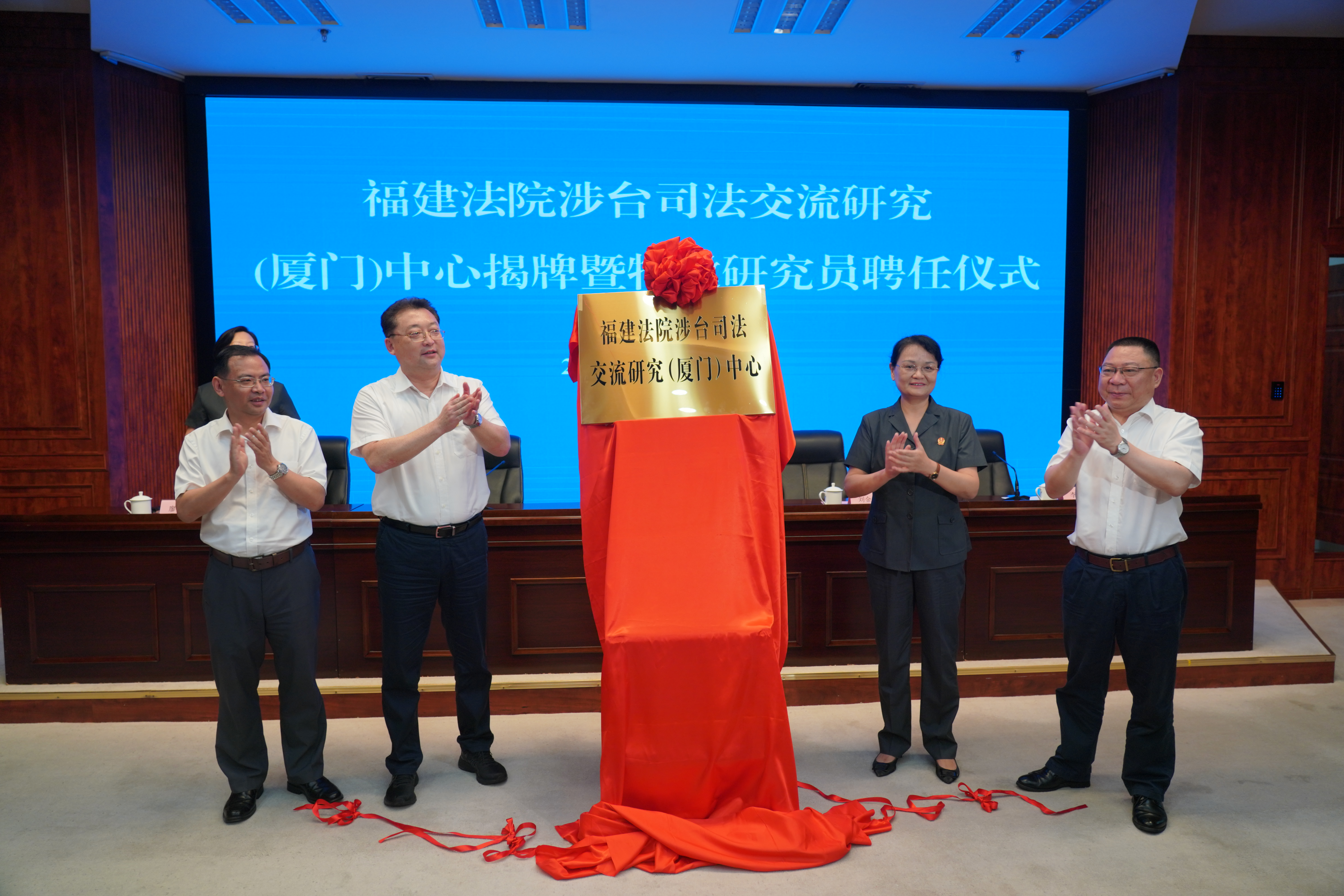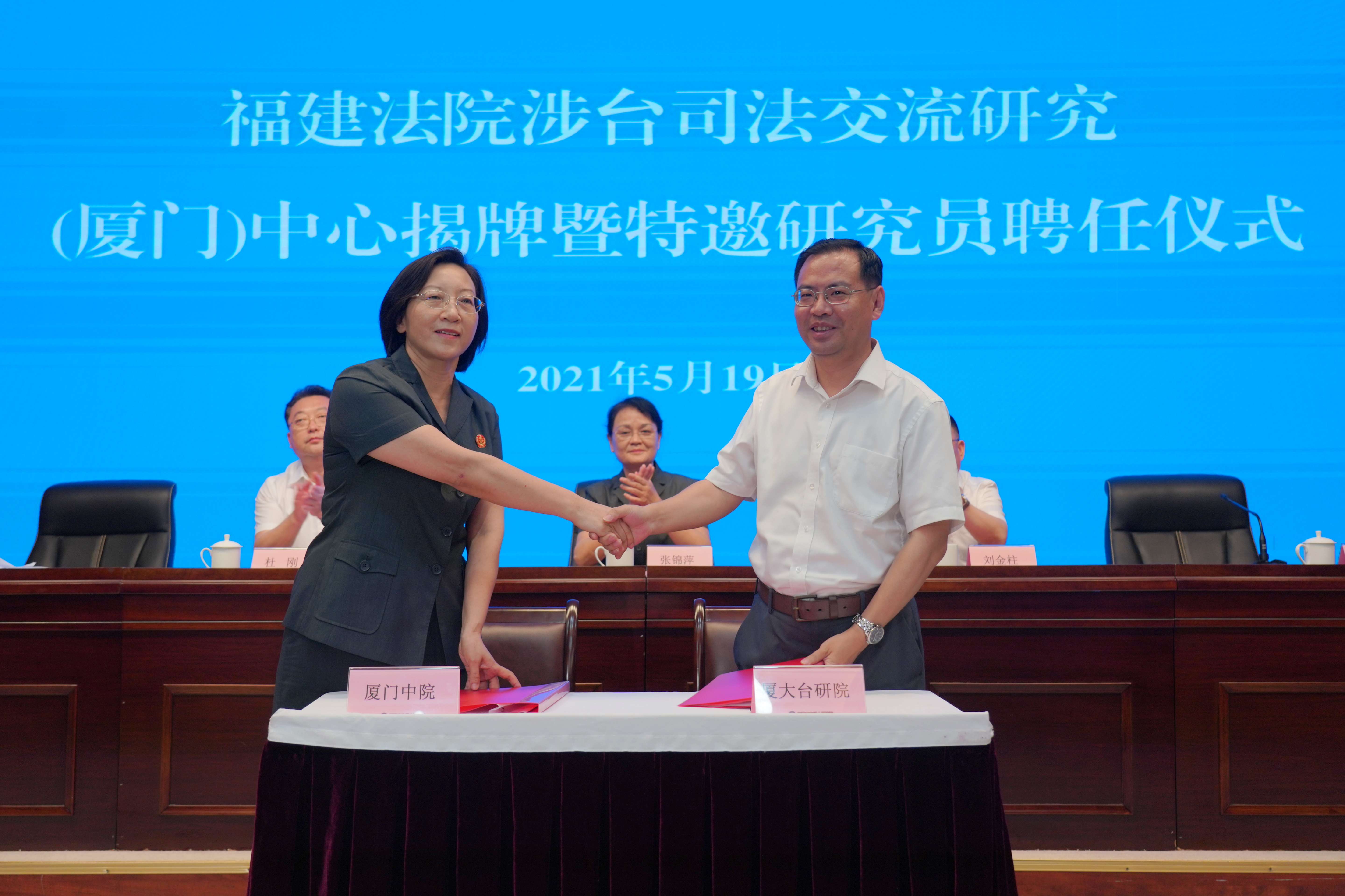 5月19日上午,福建法院涉台司法交流研究(厦门)中心在厦门中院正式成立。我院院长李鹏教授、法律所所长季烨副教授和薛永慧副教授应邀出席。此外,市人大、市政协、市台联、市律师协会、海峡交流文化中心等相关单位代表30余人参会。