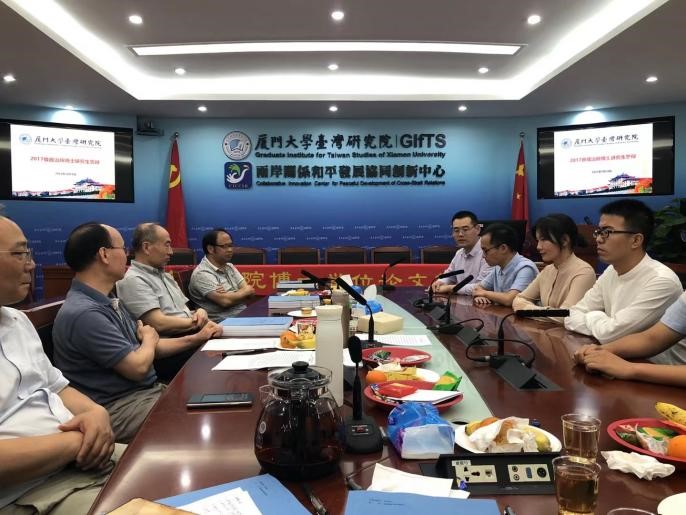 本次答辩共包含六位答辩人,他们分别是2017级博士生朱希敏的《政治文化理论视域下台湾青年政治价值观探析》、博士生唐扬的《地方涉台治理与台胞社会融入——基于苏州、东莞、厦门的比较分析》、博士生谢银萍的《中美战略博弈背景下美国台海政策研究-基于对中国核心利益认知的视角》、博士生翁明源的《民进党“总统”竞选策略研究》、博士生储斌的《台湾民间组织在两岸关系中的角色与功能研究》、博士生张亮的《“规范性力量”视域下的台湾地区与欧盟关系发展研究》。答辩的流程如下,答辩主席宣布答辩开始,博士生指导老师介绍博士生博士期间学习、科研、以及博士学位论文情况,博士生汇报毕业论文,答辩委员提问、答辩人回答相关问题、答辩主席宣读答辩决议。