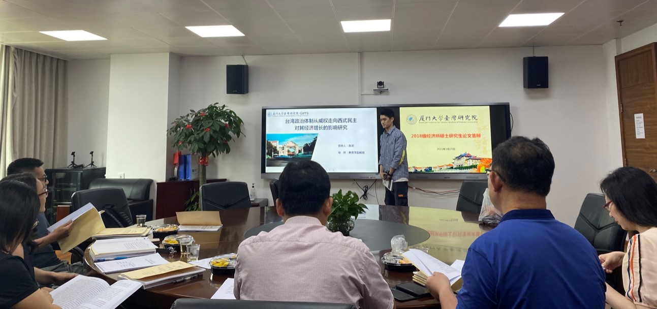 答辩开始时,答辩同学的导师向大家介绍了他们硕士期间学习、科研以及硕士学位论文的情况。答辩人刘瑞国、陈荣、郭联邦、施宇以及徐金坤,分别对他们的硕士学位论文《人口老龄化背景下台湾“国民年金”养老保险存续研究》、《台湾政治体制从威权走向西式民主对其经济增长的影响研究》、《经济政策不确定性对台商大陆投资的影响研究》、《台湾对外贸易对其制造业技术进步的影响研究》及《台湾出口贸易对产业结构升级的影响研究》进行了详细的论述及展示。随后,答辩委员对答辩同学的论文进行了点评并提出针对性的修改意见,并围绕学位论文向答辩人提问。经过思考之后,答辩同学对老师们提出的问题逐一进行回答。本次答辩共经历五个小时,顺利落幕。