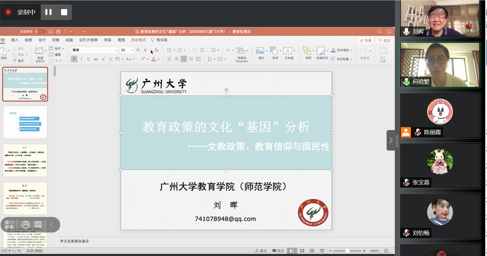 6月17日上午9:00,广州大学教育学院(师范学院)院长刘晖教授应邀在线上做“教育政策的文化‘基因’分析”的主题讲座。本次讲座是两岸所举办“两岸高等教育专题比较系列讲座”的一讲。本次讲座由两岸所何晓繁老师主持。