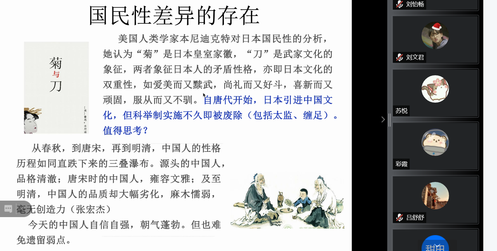 讲座最后,刘晖教授与全体师生进行了线上讨论互动。张宝蓉教授首先针对讲座内容发表了自己的体会与看法,并指出应该从文化视角反思台湾教改。同学们也结合刘老师的讲座内容就“高等教育政策与高等教育转型发展的关系”、“鸡娃问题背后家庭教育与学校教育的关系”等问题向刘老师进行了讨教,各位同学纷纷表示获益匪浅,何晓繁老师代表线上所有师生向刘晖教授致以了衷心感谢。