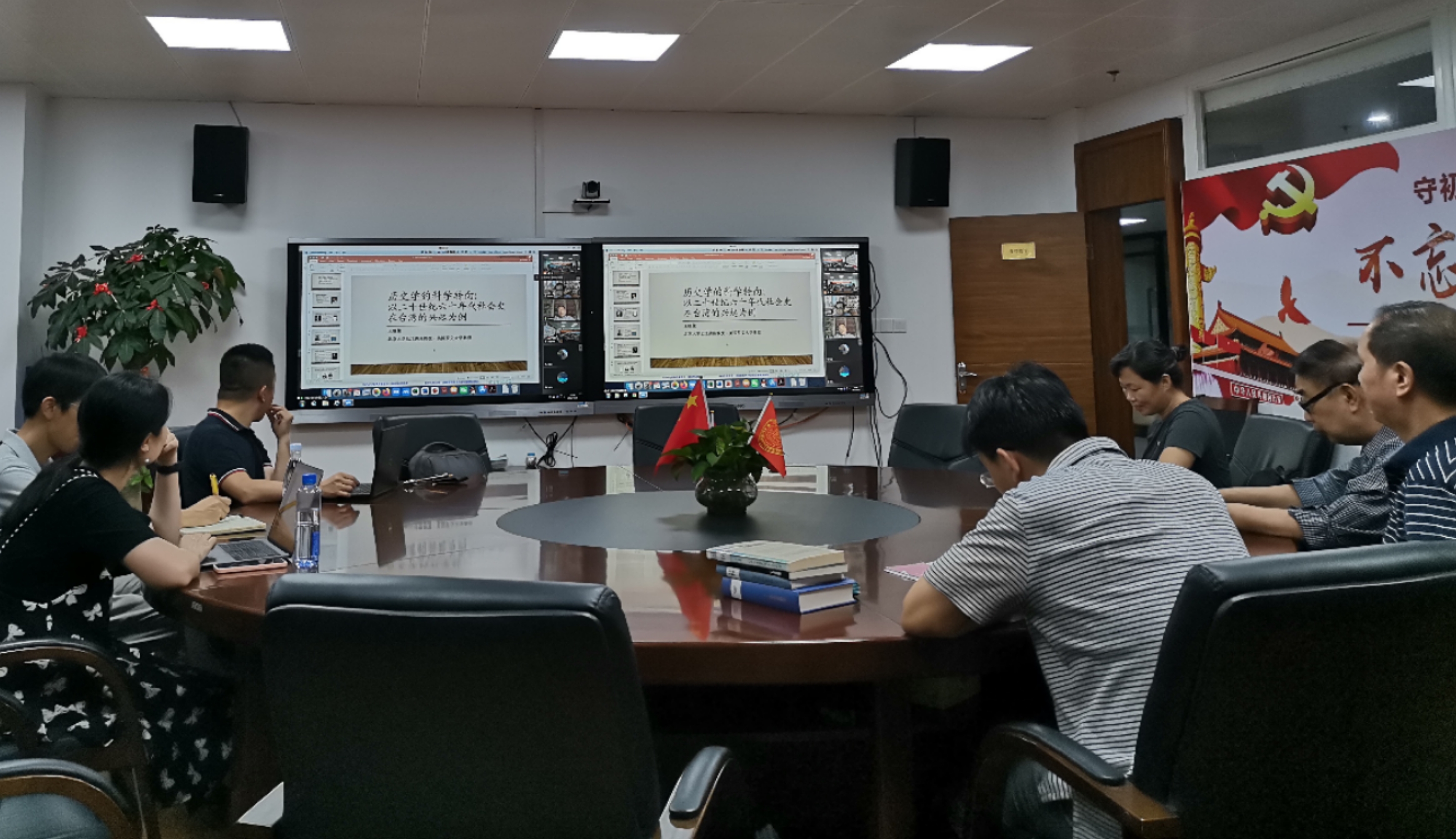 7月21日晚上8点,美国新泽西州罗文大学历史系教授、北京大学历史系长江讲座教授王晴佳为我院师生作了“历史学的科学转向——以台湾60年代社会史兴起为例的讨论”主题讲座。此次讲座采用网络视频会议的形式,我院师生在嘉庚四418统一参加视频会议。讲座由我院院长李鹏教授主持,台湾中大文学院历史系教授郑政诚担任与谈人。我院历史所陈小冲教授、所长陈忠纯教授、副所长黄俊凌副教授、王玉国助理教授、王琪颖助理教授,文学所朱双一教授,两岸所张彩霞助理教授及各所硕博生到场参加讲座。文学所张羽教授、所长蒋小波副教授,历史所陈思副教授及我院部分同学线上参与了讲座。