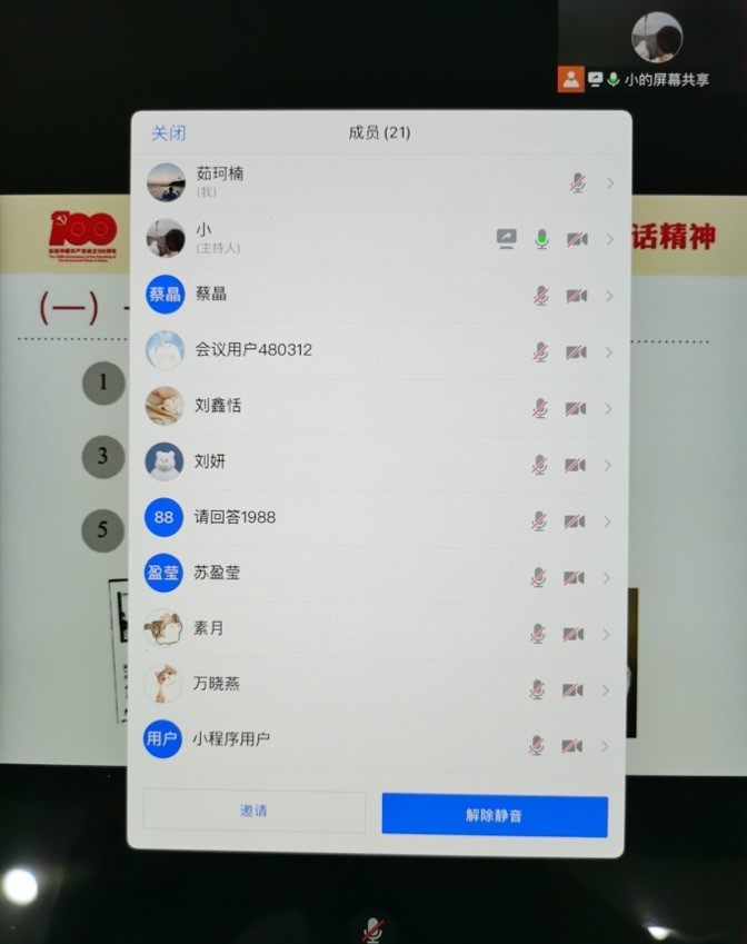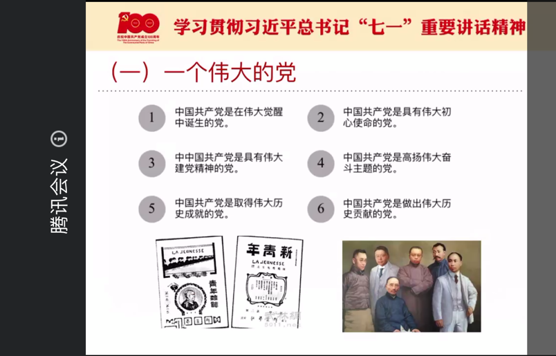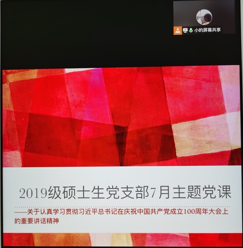 7月26日晚,我院2019级硕士生党支部开展党史学习教育“固定党日+”活动,本次活动采取线上进行的方式,以“关于认真学习贯彻习近平总书记在庆祝中国共产党成立100周年大会上的重要讲话精神”为主题,由我院经济所2019级硕士生黄昕担任主讲人,2019级硕士生党支部和2019级硕士生团支部成员共同参与了此次活动。