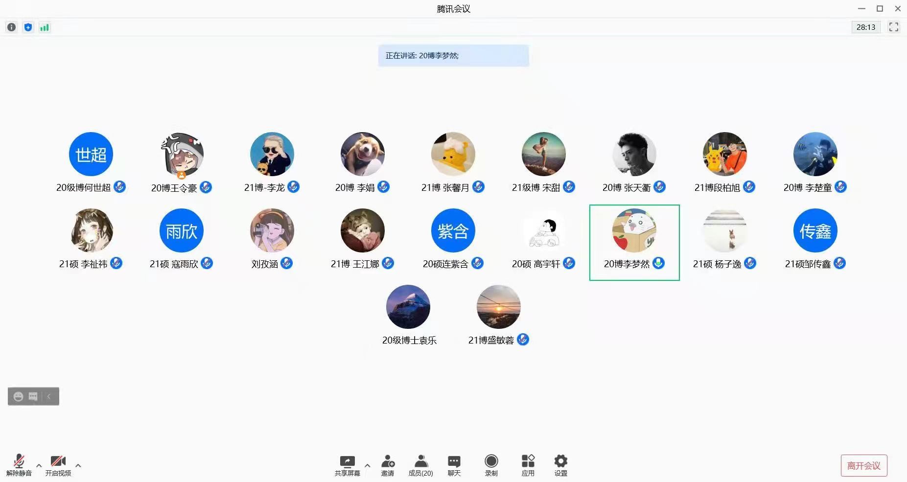 紧随其后的环节是2021级硕博士新生就近一周的学习情况在会议上进行提问,其中21级硕士寇雨欣问道如何合理规划好期中及期末考试的复习时间,李梦然博士结合自己的复习情况作了分享,并提醒要尽早适应疫情背景下长期的线上课程,适时调整学习节奏和状态。