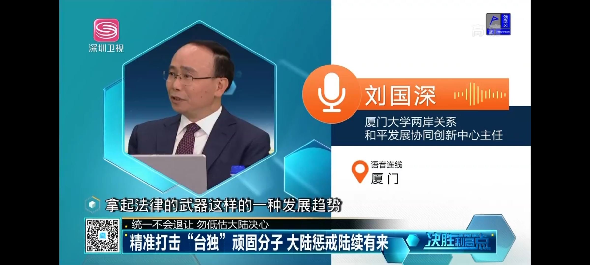 刘国深教授11月8日接受深圳卫视决胜制高点节目采访。