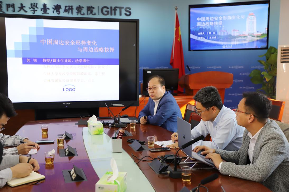 接着,郭锐教授分析了域内外大国在周边地区的竞合态势以及从中近期看中国周边安全形势走向。他指出,当下影响和主导周边安全形势变化的因素增多,传统的非主流因素影响力越来越大并成为域内外主要国家相互竞争的“战略高地”。域内外大国之间的战略博弈依然会持续,面对我国周边安全形势的变化,构建新型周边关系是当务之急。