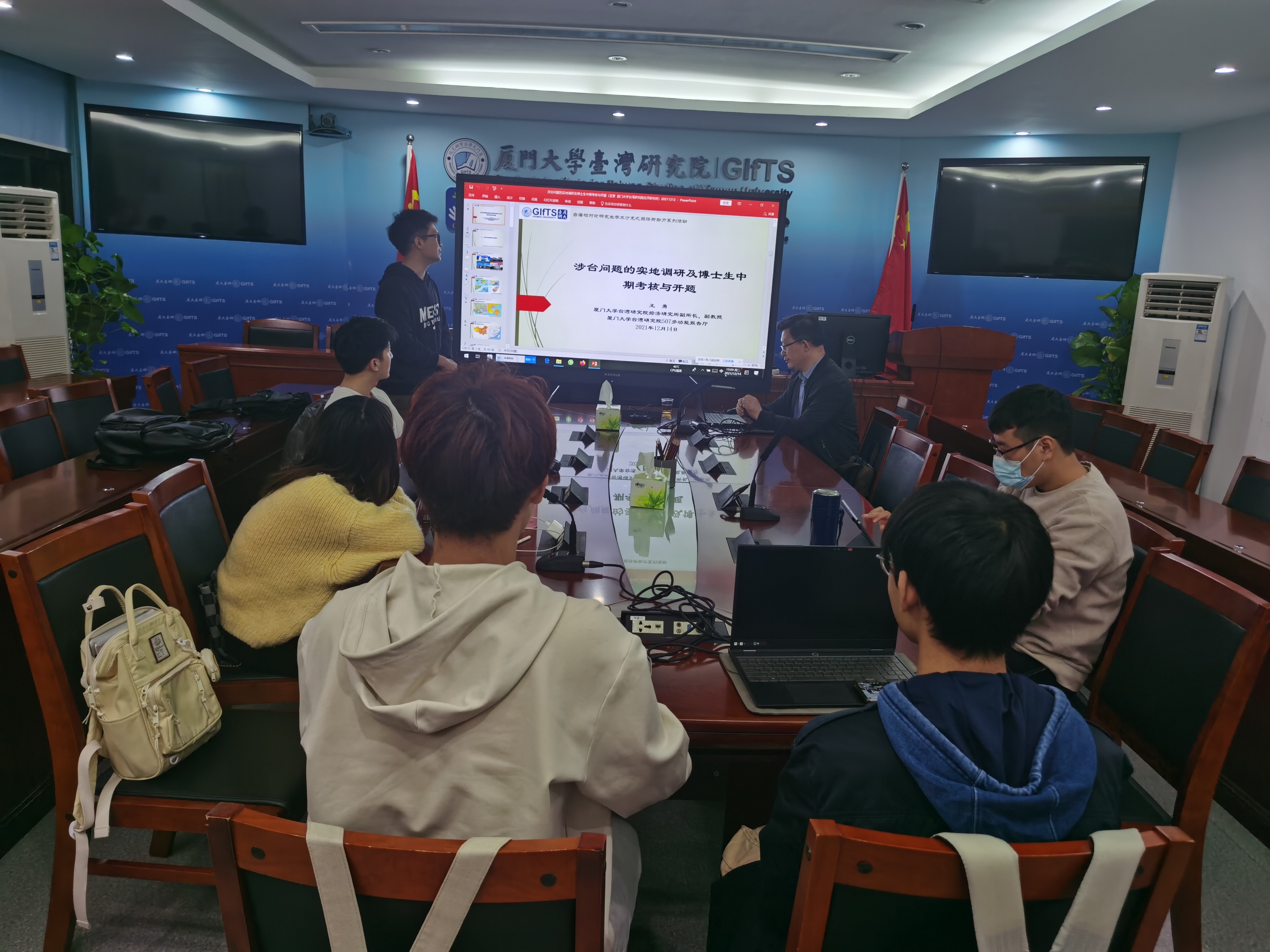 12月14日晚7点,“台海相对论”研究生学术沙龙暨经济所助力系列活动的第四场讲座在我院507会议室展开。999全讯白菜网经济研究所王勇副教授以“涉台问题的实地调研及博士生中期考核与开题”为题,与我院师生进行分享。讲座由经济所2020级硕士生符传杰主持,我院硕博生参加了讲座。