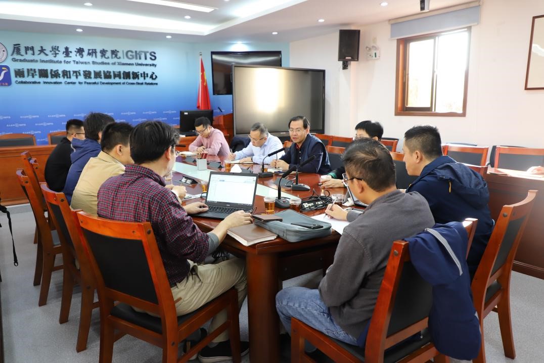 12月17日上午,“探索两岸融合发展新路”学习座谈会在我院507会议室举行。院党委书记曾云声、院长李鹏教授、经济所邓利娟教授、林子荣助理教授,法律所所长季烨副教授、刘文戈助理教授,文学所所长蒋小波副教授,历史所所长陈忠纯教授、副所长黄俊凌副教授、王玉国助理教授,两岸所副所长肖日葵副教授,政治所王贞威助理教授参与会议。