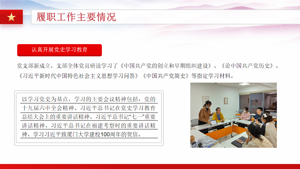 随后,支部成员也就自己在上一年度工作学习中的问题以及党史学习情况进行了深入的自我审视与查摆,并展开批判与自我批判。党支部书记邹传鑫同志认为支部党员对于自我和他人的批评都较为精准和深刻,同时各党员对党支部的工作建议,也都对支部未来的建设和发展都大有裨益。