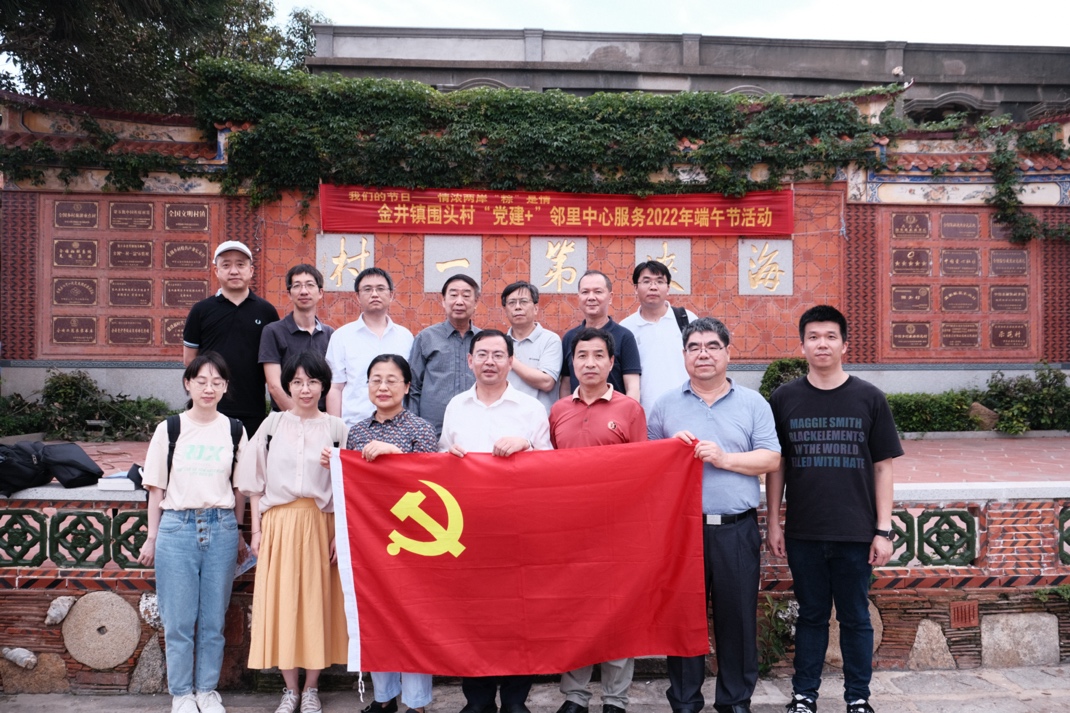 随后,考察团赴晋江市围头村考察“八·二三”炮战遗址。围头村素有“海峡第一村”的美誉,地处福建省东南沿海最南端,与大金门岛隔海相望,过去曾是“八·二三”炮战的阵地之一。在围头村村委会书记洪水平的带领下,考察团参观了毓秀楼炮战遗址、八二三战地公园、围头海角一号碉堡遗址。在参观过程中,洪水平书记向考察团介绍了从“八·二三”炮战以来围头村的发展历程,在二十年的奋斗目标之下,围头从昔日的福建海防最前线成为了今日的闽台交流的最前沿,与台湾建立了密切的姻亲关系,真实反映了两岸关系的变化。在临行前,围头村村委会还向考察团赠送了《围头记忆》《围头地情研究》等珍贵研究资料。