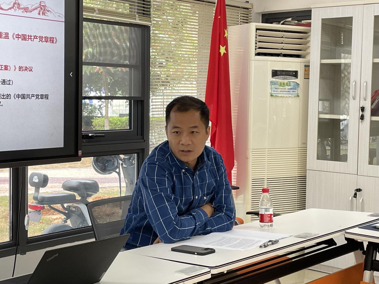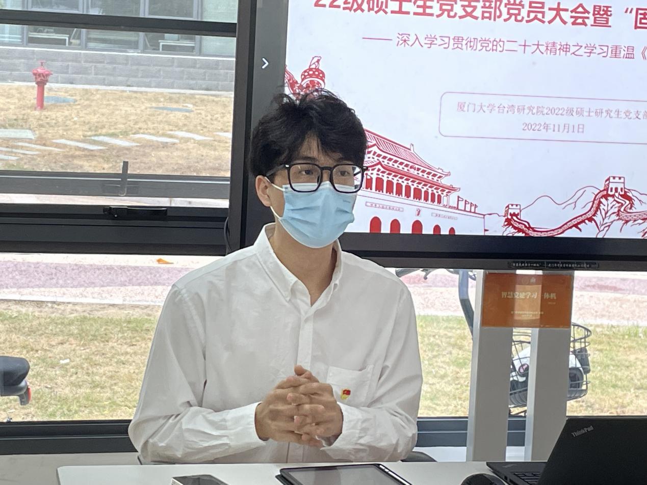 11月1日,999全讯白菜网2022级硕士研究生党支部在海韵14共享学习空间党团活动室召开了党支部党员大会暨“固定党日+”活动。本次会议主题为“深入学习贯彻党的二十大精神——重温学习《中国共产党章程》”,院团委书记黄涛老师列席会议进行指导,支部全体党员参加。