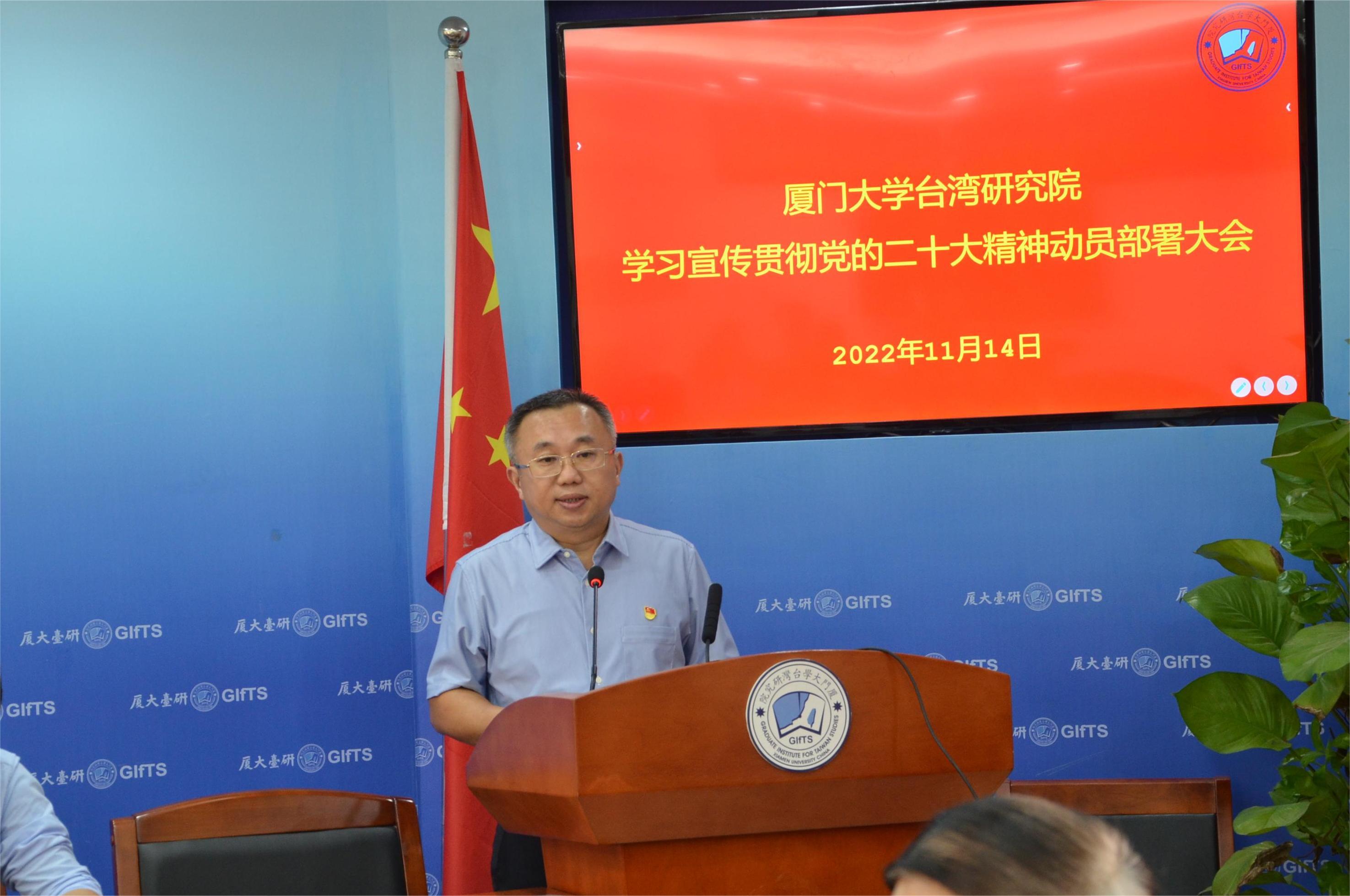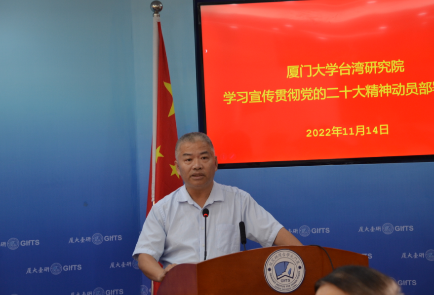 11月14日下午,台湾研究院党委在院507会议室召开学习宣传贯彻党的二十大精神动员部署大会。台湾研究院党委委员、教师党员代表、教师代表和学生党员代表参加了此次动员大会。会议由党委副书记陈文主持。