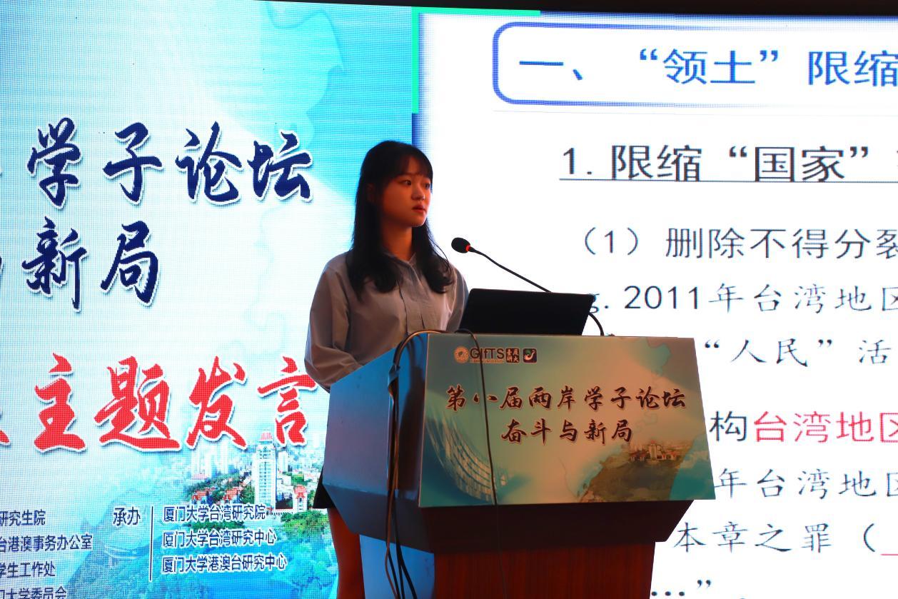 11月20日,以“奋斗与新局”为主题的第八届两岸学子论坛在福建厦门顺利召开。本次论坛采用线下会议与线上连线同步进行的方式,吸引了来自北京大学、清华大学、台湾大学、澳门科技大学等海峡两岸和港澳地区70余所知名高校的300余位青年学子和台湾研究学者与会。