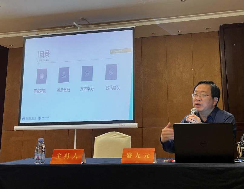 讲座伊始,王勇副教授向大家介绍了盛九元研究员的专业背景和研究方向。随后,盛九元研究员从两岸融合发展的研究背景、两岸融合发展的理论和实践基础、当前两岸融合发展的基本态势、进一步通过法律手段推动两岸融合发展的建议四个层面展开分析。盛九元研究员指出,宪法上的两岸同属一个中国是两岸融合发展的基础,盛九元研究员通过论述支撑两岸融合发展的法律框架,进而分析了法律在促进两岸融合发展中的重要作用。
