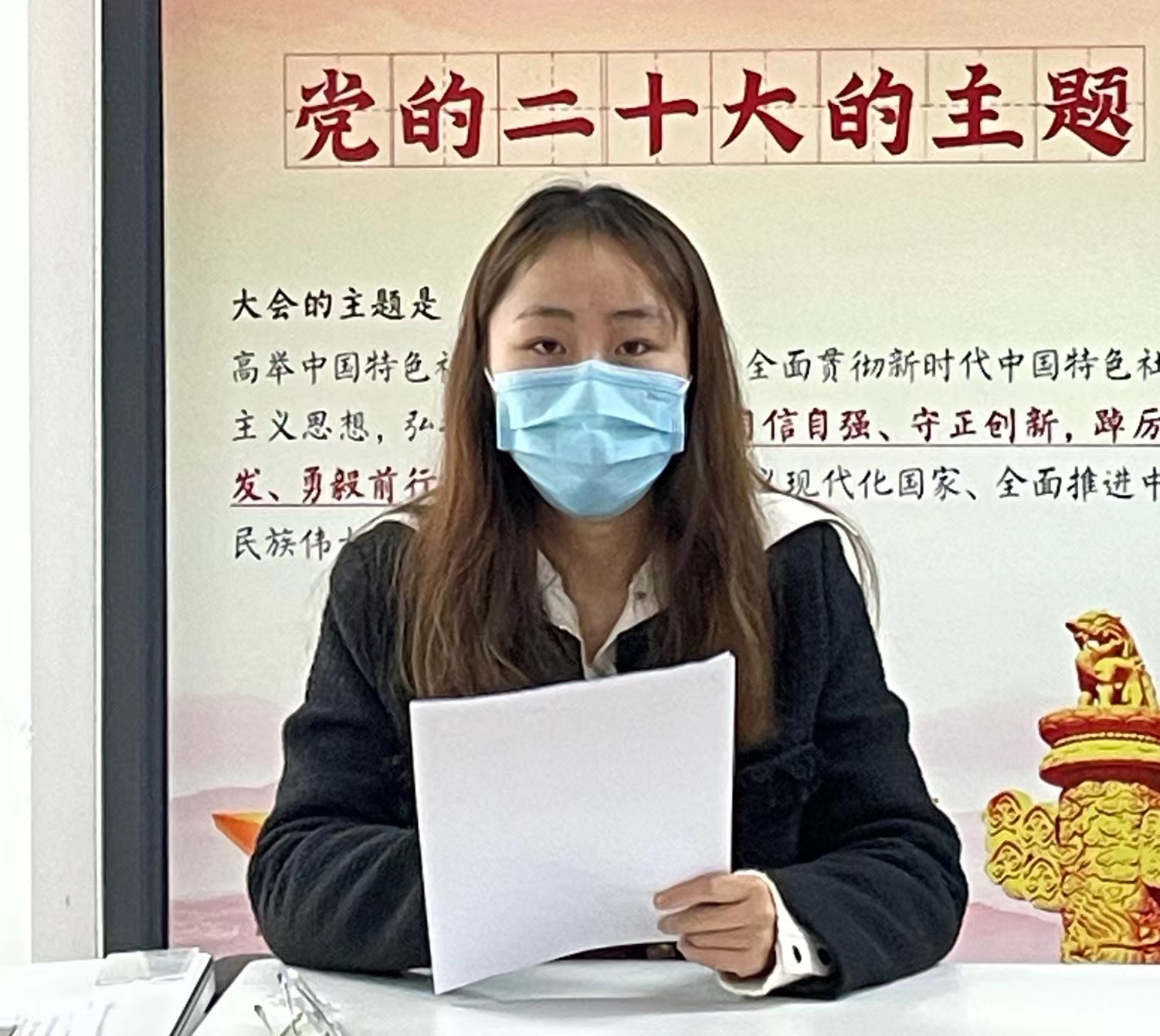 乐观同志表示:此次转正大会恰逢全党认真学习宣传贯彻党的二十大精神,因此组织支部全体党员一起重温入党誓词,希望支部全体党员能够时刻牢记自己作为一名共产党员的政治责任和使命担当,进一步将大家的思想统一到党的二十大精神上,在日后的学习和生活中坚持以实际行动践行党员的先锋模范作用。