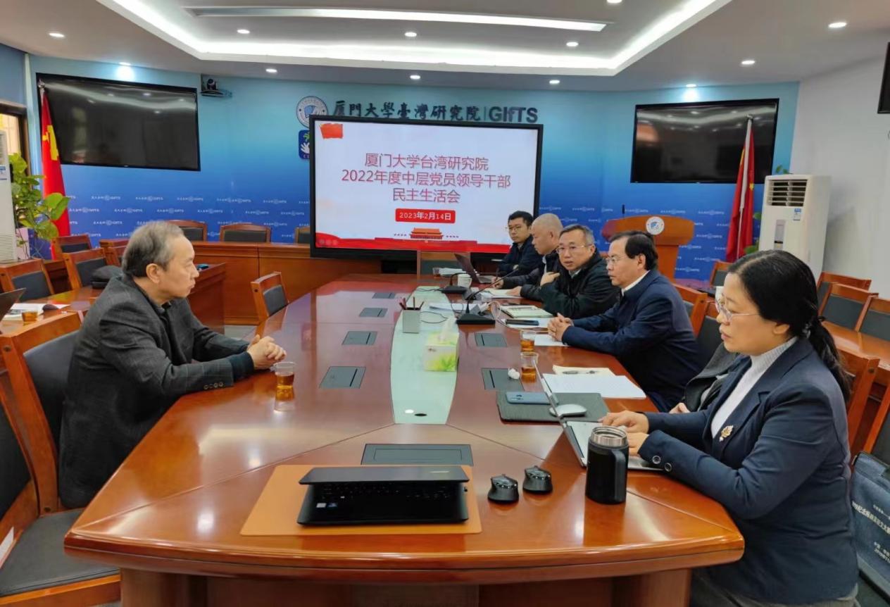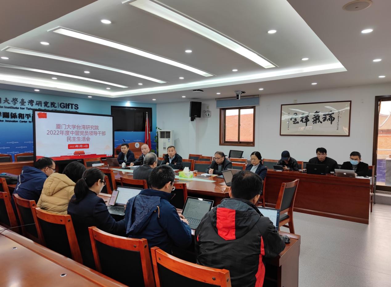 2023年2月14日上午,台湾研究院在院507会议室召开了2022年中层党员领导干部民主生活会。此次民主生活会以全面贯彻习近平新时代中国特色社会主义思想,深刻领悟“两个确立”的决定性意义,增强“四个意识”、坚定“四个自信”、做到“两个维护”,团结带领党员领导干部群众以奋发有为的精神贯彻落实党的二十大作出的重大决策部署为主题。院党委书记曾云声主持会议,第四督导组郑冰冰老师、党建联络员白锡能老师莅临指导,院领导班子成员出席会议,各研究所正副所长、中心正副主任、工会主席、科级干部列席会议。