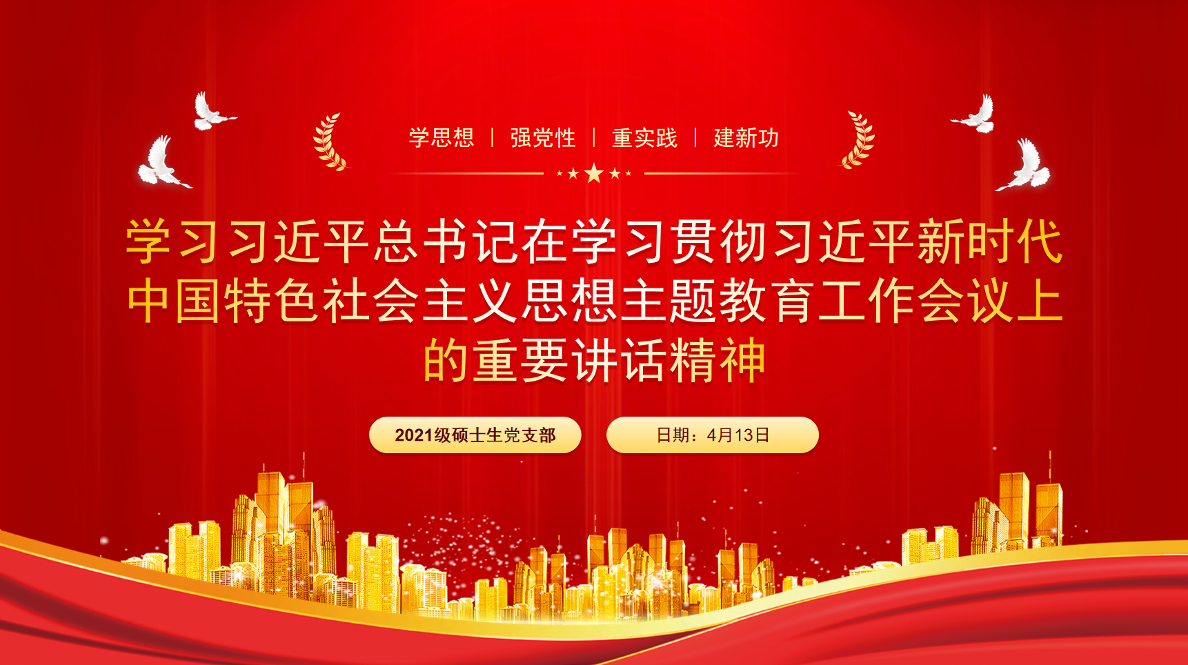 4月13日晚,我院2021级硕士生党支部在线上召开以“学习习近平总书记在学习贯彻习近平新时代中国特色社会主义思想主题教育工作会议上的重要讲话精神”为主题的党员大会暨“固定党日+”活动,2021级硕士生党支部全体党员参加本次活动。本次会议由党支部书记陈尤海主持。